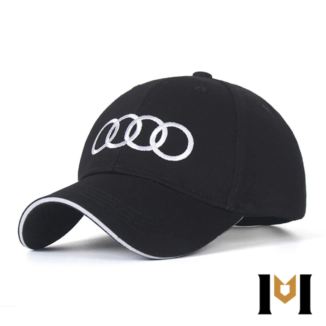O Boné AUDI é uma exclusividade da marca. Mesmo em uma versão mais siplificada o modelo traz um design esportivo cheio de estilo. Projetado com estrutura resistente, este boné aba curva possui fechamento ajustável com fivela de metal.