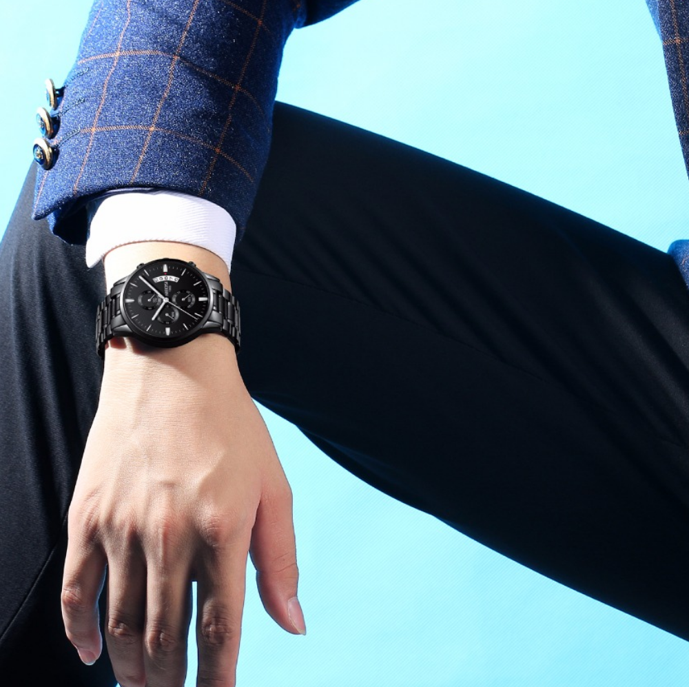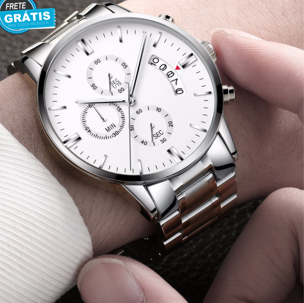 Precisão e resistência em aço inoxidável super resistente, pulseira de 25 cm de comprimento por 2 cm de largura ajustável, em um relógio luxuoso e 100% funcional.