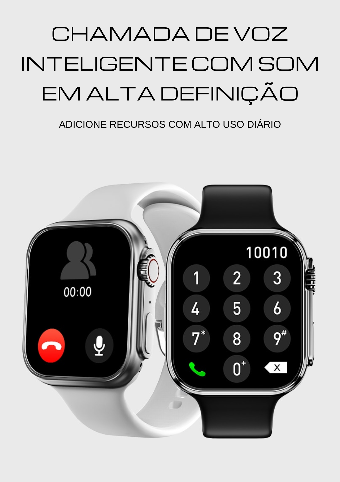 O Smartwatch T800 Serie 8 Ultra® é um Relógio Completo. Ele tem muitas atribuições e funcionalidades, possui Monitor de Saúde, Foto como papel de parede, notificações de rede social, câmera remota, agenda telefônica, NFC e resistência a água.