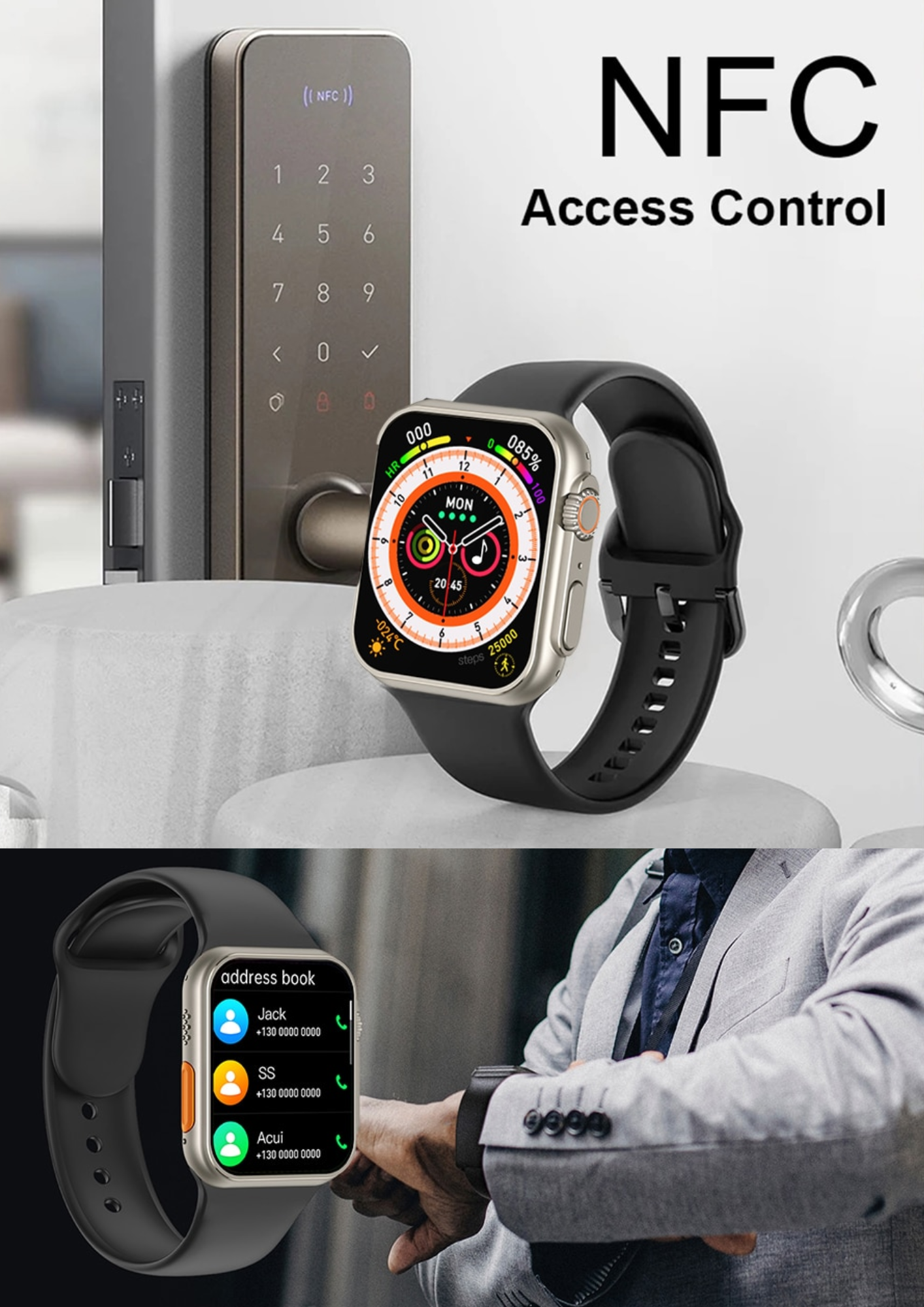 ✔️ Praticidade: Possui NFC, cadastre seus apps favoritos e abra fechaduras com sensor de proximação, com o auxilio de alguns apps também é possível cadastrar seu cartão de crédito e fazer pagamentos simplesmente aproximando seu smartwach da maquina de cartão. Extremamente seguro, simples e fácil.